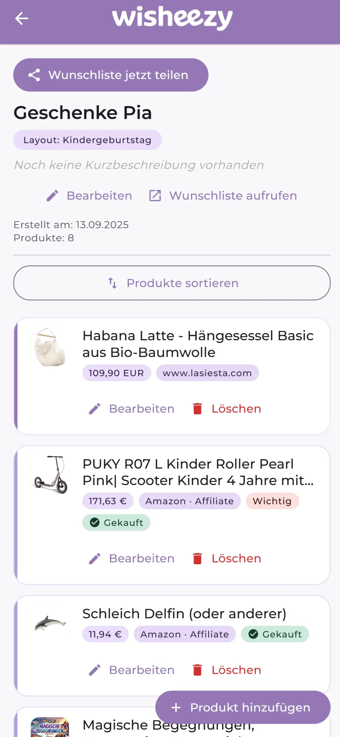 If you have already created a wish list on the web, you can easily load it into the app using the edit link. Simply insert the link on the corresponding screen and you can manage the wish list via the app.